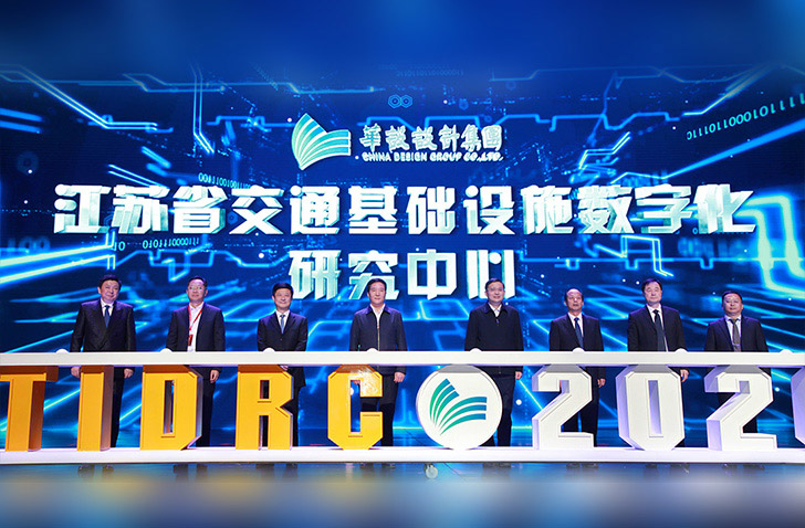 江苏省交通运输厅党组书记、厅长、省铁路办公室主任陆永泉、江苏交通控股有限公司董事长蔡任杰、江苏铁路集团董事长常青、江苏港口集团董事长王永安、东部机场集团董事长冯军、江苏省工业和信息化厅副厅长池宇、华设设计集团董事长杨卫东、总裁刘鹏为江苏省交通基础设施数字化研究中心揭牌